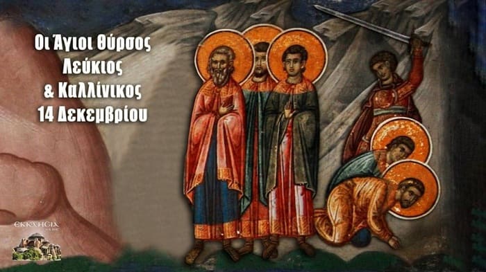 Σύμφωνα με το ιερό συναξάρι της ημέρας, μαζί με τον άγιο Θύρσο εορτάζουμε και τη μνήμη άλλων δύο Μαρτύρων, του Λεύκιου και του Καλλίνικου (κατ’ άλλους Κορωνάτου). Έζησαν στα μέσα του 3ου αιώνα μ. Χ., όταν είχαν θεριέψει οι διωγμοί κατά των Χριστιανών και κατά χιλιάδες συλλαμβάνονταν και οδηγούνταν σε φρικτά βασανιστήρια και το θάνατο. Το 249 ανέβηκε στο θρόνο της Ρώμης ο Δέκιος (249-251), ένας θρησκόληπτος, θρησκομανής, δεισιδαίμων και φανατικός ειδωλολάτρης αυτοκράτορας, ο οποίος πίστευε πως οι «θεοί» της αυτοκρατορίας είχαν ανάγκη από την αναδιοργάνωση της θρησκείας τους, για να δείξουν την εύνοιά τους στο κράτος, το οποίο έδειχνε σημάδια παρακμής. Κύριο χαρακτηριστικό αυτής της αναδιοργάνωσης ήταν η εξαφάνιση του Χριστιανισμού, ο οποίος θεωρούνταν από τους ειδωλολάτρες ως θρησκεία αποκρουστική και μισάνθρωπη, επειδή έθετε απαγορεύσεις στην έκλυση των ηθών και την ακολασία. Ας μη λησμονούμε ότι η ικανοποίηση των παθών και η ακολασία όχι μόνο δεν θεωρούνταν από τους ειδωλολάτρες κάτι κακό, αλλά ως λατρεία των δαιμονικών «θεών», όπως λ. χ. η «Ιερά Πορνεία», μέσω της οποίας λατρεύονταν η «θεά» Αφροδίτη, ή η μέθη και τα όργια προς τιμήν του Βάκχου. Γι’ αυτό εξήγγελλε σκληρό διωγμό σε όλη την αυτοκρατορία. Μυριάδες Χριστιανοί συλλαμβάνονταν και σύρονταν στα μαρτύρια για να αρνηθούν την πίστη τους στο Χριστό και να θυσιάσουν στα απαίσια είδωλα.