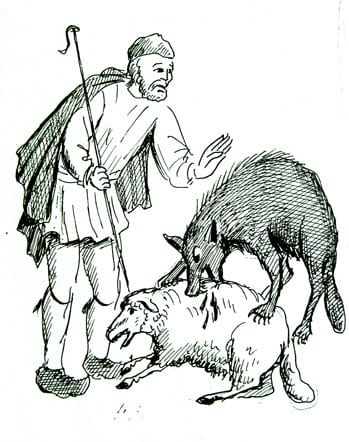 Σύμφωνα μέ τόν Χριστό μας[1], ὁ Ἴδιος εἶναι ὁ καλός Ποιμένας, πού πονᾶ καὶ ἐνδιαφέρεται εἰλικρινῶς γιὰ τὰ πρόβατα καί παραδίδει ἀκόμη καί τὴ ζωή Του γιὰ νὰ τά σώσει. Ὁ δὲ μισθωτὸς ὑπηρέτης, ποὺ δὲν εἶναι ποιμένας, καὶ δὲν εἶναι δικά του τὰ πρόβατα, βλέπει τὸν λύκο νὰ ἔρχεται, καὶ ἐπειδὴ δὲν τά ἀγαπᾶ, τά ἀφήνει ἀνυπεράσπιστα καὶ φεύγει γιὰ νὰ μὴν κινδυνεύσει ἡ ζωή του. Ἐλεύθερος τότε ὁ λύκος, τά ἁρπάζει καί τά σκορπίζει. Μισθωτούς ἀποκάλεσε ὁ Κύριός μας, τούς σύγχρονούς Του Ἀρχιερεῖς, ποὺ μόνο γιὰ τὰ πρόσκαιρα ὀφέλῃ εἶχαν προσκολληθῇ στὸ ποίμνιο τοῦ Θεοῦ. Καί οἱ μισθωτοί βλέπουν τούς λύκους νά ἐπιτίθενται στό ποίμνιό τους καί φεύγουν μακριά, διότι δὲν τὰ πονοῦν. Ἐνδιαφέρονται κυρίως νὰ πάρουν τὸν μισθό τους καὶ δὲν διακινδυνεύουν ποτὲ τὴ ζωή τους.