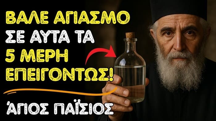 Σε αυτή την πνευματική διδασκαλία θα ανακαλύψεις τα πέντε μέρη του σπιτιού σου όπου πρέπει να βάλεις αγιασμό, για να λάβεις ειρήνη, προστασία και θεία χάρη.