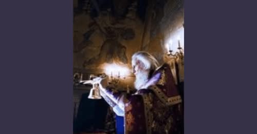 – ‘Αμποτε, παιδί μου, νά τό φορέσεις τό ράσο κι αληθινά, είπε ό παπα-θανάσης καί τόν ευλόγησε με τά δυό του χέρια, εκείνα πού πριν από λίγο κρατούσαν τόν Ίδιο τόν Κύριο. Καί παράξενο- ό παπα-Θανάσης είχε τή σιγουριά πώς αύτό θά γινό­ταν κάποια μέρα! Καί ακόμα πιό παράξενο- τήν ίδια σιγουριά ένιωθε μέσα του κι ό νεαρός.