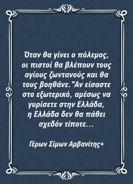 Όταν ακούσετε ότι έφθασαν σε τόσο μεγάλη κρίση οι διπλωματικές σχέσεις των Ελλήνων με τους γείτονές τους (Τουρκία), εσείς ένα πράγμα θα κάνετε. Θα πείτε: «Ταῖς πρεσβείαις τῆς Θεοτόκου, Σῶτερ, σῶσον ἡμᾶς» και να το πείτε γονατιστοί και θα έχετε μεγάλη σκέπη.