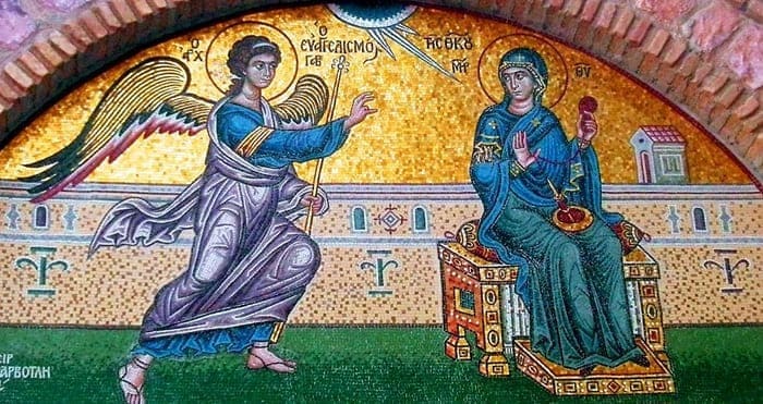 Το ιερό κείμενο αναφέρει πως «εν δε τω μηνί τω έκτω απεστάλη ο άγγελος Γαβριήλ υπό Θεού εις πόλιν της Γαλιλαίας, η όνομα Ναζαρέτ, προς παρθένον μεμνηστευμένην ανδρί, ω όνομα Ιωσήφ, εξ οίκου Δαυίδ, και το όνομα της παρθένου Μαριάμ, και εισελθών ο άγγελος προς αυτήν είπε΄ χαίρε κεχαριτωμένη΄ ο Κύριος ματά σου΄ ευλογημένη συ εν γυναιξί. Η δε ιδούσα διεταράχθη επί τω λόγω αυτού, και διελογίζετο ποταπός είη ο ασπασμός ούτος. Και είπεν ο άγγελος αυτή΄ Μαριάμ΄ εύρες γαρ χάριν παρά τω Θεώ. Και ιδού συλλήψη εν γαστρί και τέξη υιόν, και καλέσεις το όνομα αυτού Ιησούν. Ούτος έσται μέγας και υιός υψίστου κληθήσεται, και δώσει αυτώ Κύριος ο Θεός τον θρόνον Δαυίδ του πατρός αυτού, και βασιλεύσει επί τον οίκον Ιακώβ εις τους αιώνας, και της βασιλείας αυτού ουκ έσται τέλος» (Λουκ.1,26-33). Η ευλογημένη Κόρη απόρησε και ρώτησε τον ουράνιο αγγελιοφόρο: «πώς έσται μοι τούτο, επεί άνδρα ου γινώσκω;» (Λουκ.1,34). Έχοντας υπόψη Της τους φυσικούς νόμους, θεώρησε παράδοξη και αφύσικη την κύησή Της. Η γέννηση των ανθρώπων και όλων των ζωντανών πλασμάτων είναι προϊόν ετερόφυλων μείξεων. Ο άρχων των αγγελικών δυνάμεων Γαβριήλ, διαβλέποντας την δικαιολογημένη απορία Της, της είπε: «Πνεύμα Άγιον επελεύσεται επί σε και δύναμις υψίστου επισκιάσει σοι΄ διό και το γεννώμενον άγιον κληθήσεται υιός Θεού» (Λουκ.1,35). Και συνέχισε ο μέγας αρχάγγελος: «ουκ αδυνατήσει παρά τω Θεώ παν ρήμα» (Λουκ.1,37).