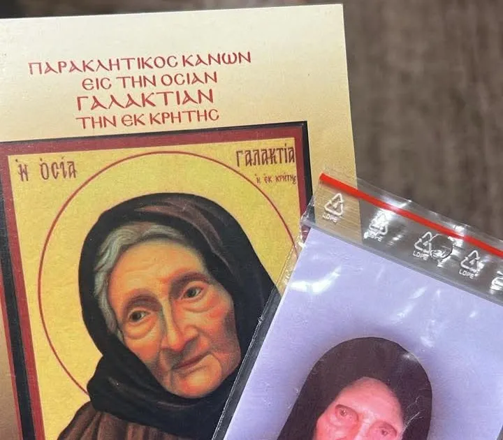 Άφησα το όνειρο στην άκρη , χειρουργήθηκα , γύρισα σπίτι και περίμενα τα αποτελέσματα μου να δω αν έχει γίνει μετάσταση κ που ! Τις μέρες που περίμενα ήρθε το δέμα από τις μοναχές , ανοίγω το φάκελο παίρνω το λαδακι που μου είχαν στείλει και βλέπω κ μια εικονίτσα μέσα , την βγάζω και τι να δω ; Το πρόσωπο που είχα δει στον ύπνο μου ήταν στα χέρια μου και ήταν Η γερόντισσα μας , Οσία Γαλακτια ! Την επόμενη μέρα πήρα τα αποτελέσματα μου , πεντακάθαρα , δεν είχε γίνει μετάσταση πουθενά ! Βρίσκομαι μόνο σε θεραπείες προληπτικές για ένα χρόνο ! Για μένα αυτό ήταν Θαύμα ! Στις 5 Μαΐου κατάφερα και πήγα στην Κρήτη να την ευχαριστήσω από κοντά, έκατσα στο μνήμα της και μόνο ευχαριστώ της έλεγα και εκλεγα !Θα την ευχαριστώ και θα την δοξάζω για όσο ζω ! Οπου σταθώ κ όπου βρεθώ μιλάω για την γερόντισσα μας !