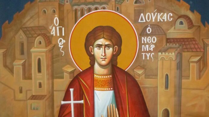 Το νέφος των Νεομαρτύρων λαμπρύνουν, ως νοητοί αστέρες, το νοητό στερέωμα της Εκκλησίας μας. Υπήρξαν, σε ηρωικό φρόνημα, εφάμιλλοι των Μαρτύρων της αρχαίας Εκκλησίας, εμμένοντας στην σώζουσα χριστιανική πίστη και στην αγία βιωτή, την οποία επαγγέλλεται το Ευαγγέλιο του Χριστού. Ένας από αυτούς είναι και ο άγιος Νεομάρτυς Δούκας ο Ράπτης από την Μυτιλήνη, ο οποίος γδάρθηκε ζωντανός από τους μουσουλμάνους Αγαρηνούς, επειδή αρνήθηκε τον εξισλαμισμό και καταφρόνησε την ακολασία που υπαγορεύει το Ισλάμ.