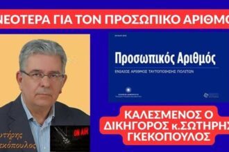 ‘ΤΑ ΝΕΟΤΕΡΑ ΓΙΑ ΤΟΝ ΠΡΟΣΩΠΙΚΟ ΑΡΙΘΜΟ’.ΚΑΛΕΣΜΕΝΟΣ Ο ΔΙΚΗΓΟΡΟΣ κ.ΣΩΤΗΡΗΣ ΓΚΕΚΟΠΟΥΛΟΣ!